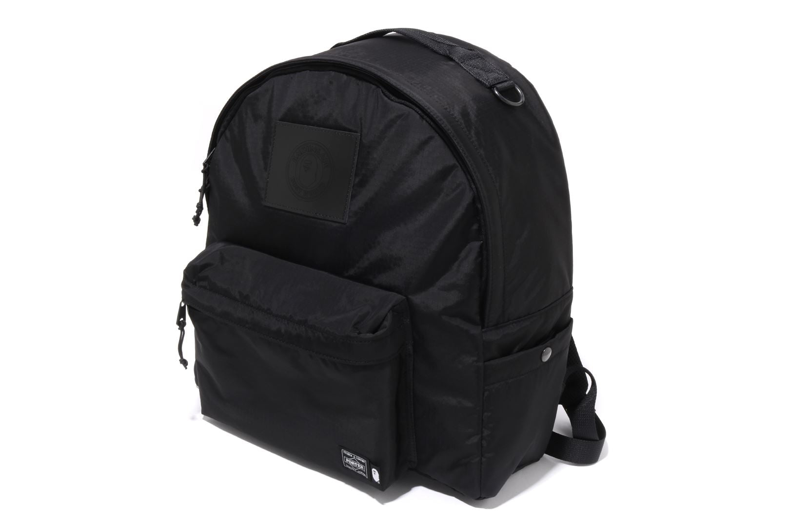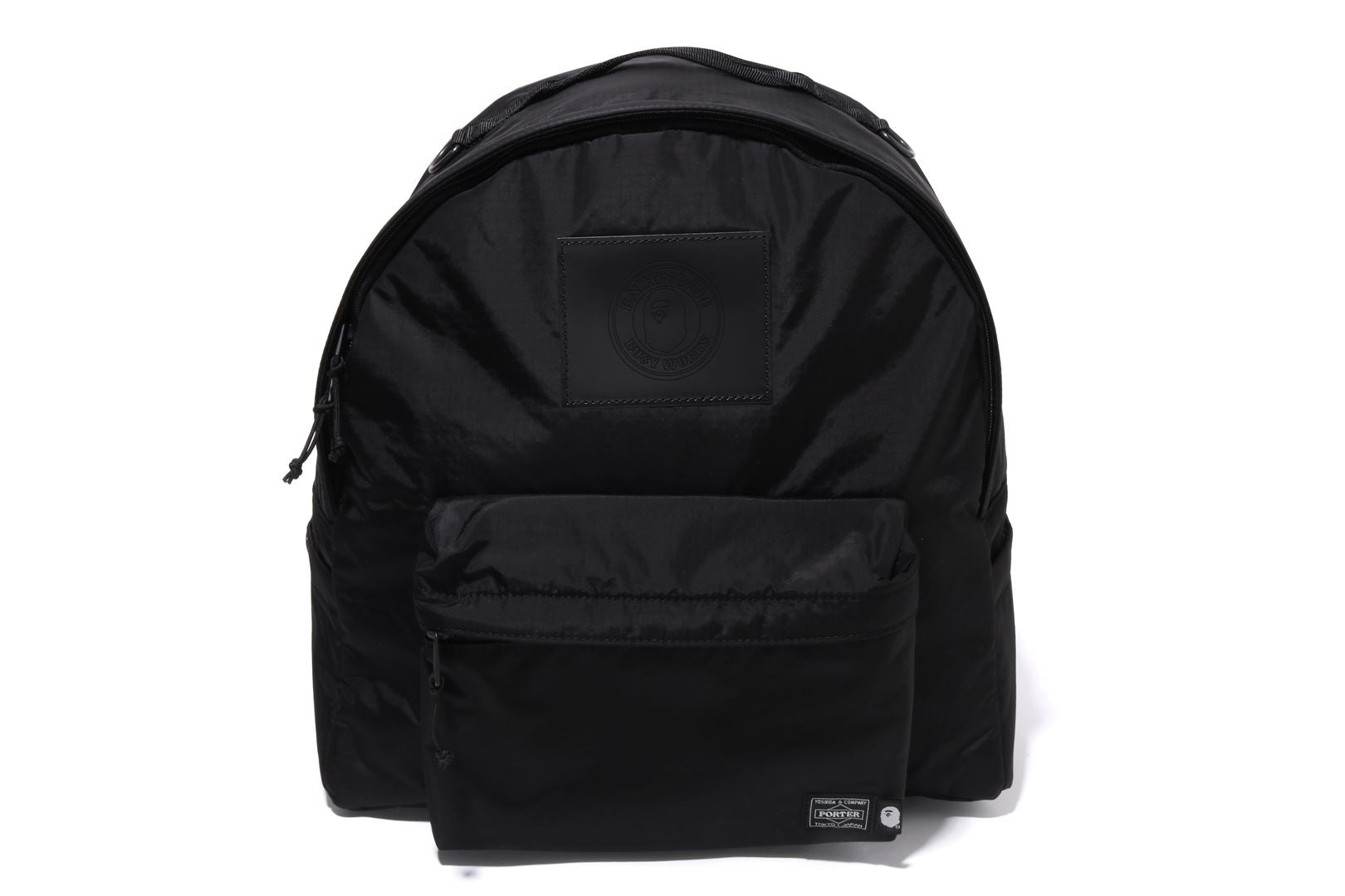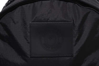 Double compartment daypack made of nylon ripstop material. A leather tag with the BUSYWORKS logo punched on the front panel, and a zipped pocket underneath the tag. A name tag embroidered with the names of the two brands is attached to the bottom left of the pocket. The ceiling zipper has a double zip design, zip pockets on both sides, an original carabiner on the top handle, and a strap on the back. Available in 2 colors and 1 size. Collaboration model with Porter.