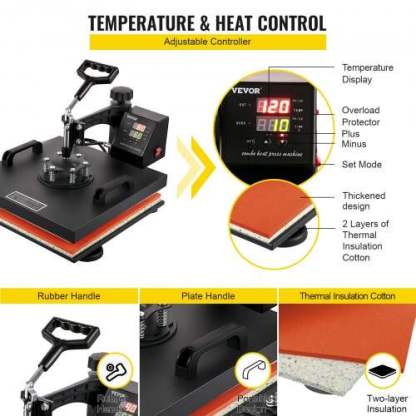 Cette presse à chaud 15 x 15 utilise la toute dernière technologie d'isolation double couche pour améliorer les performances de transfert. Grâce à des cartes mères fiables et à un contrôleur de température précis, la stabilité est encore améliorée. Amélioré. Tous les accessoires sont fournis pour vous aider à appliquer ces magnifiques graphismes sur des t-shirts, des casquettes, des assiettes, des mugs, etc.