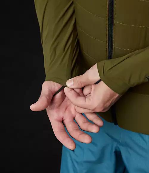 - Clean-finished cuffs with flat-sewn elastic thumb-loops for security and easy layering
