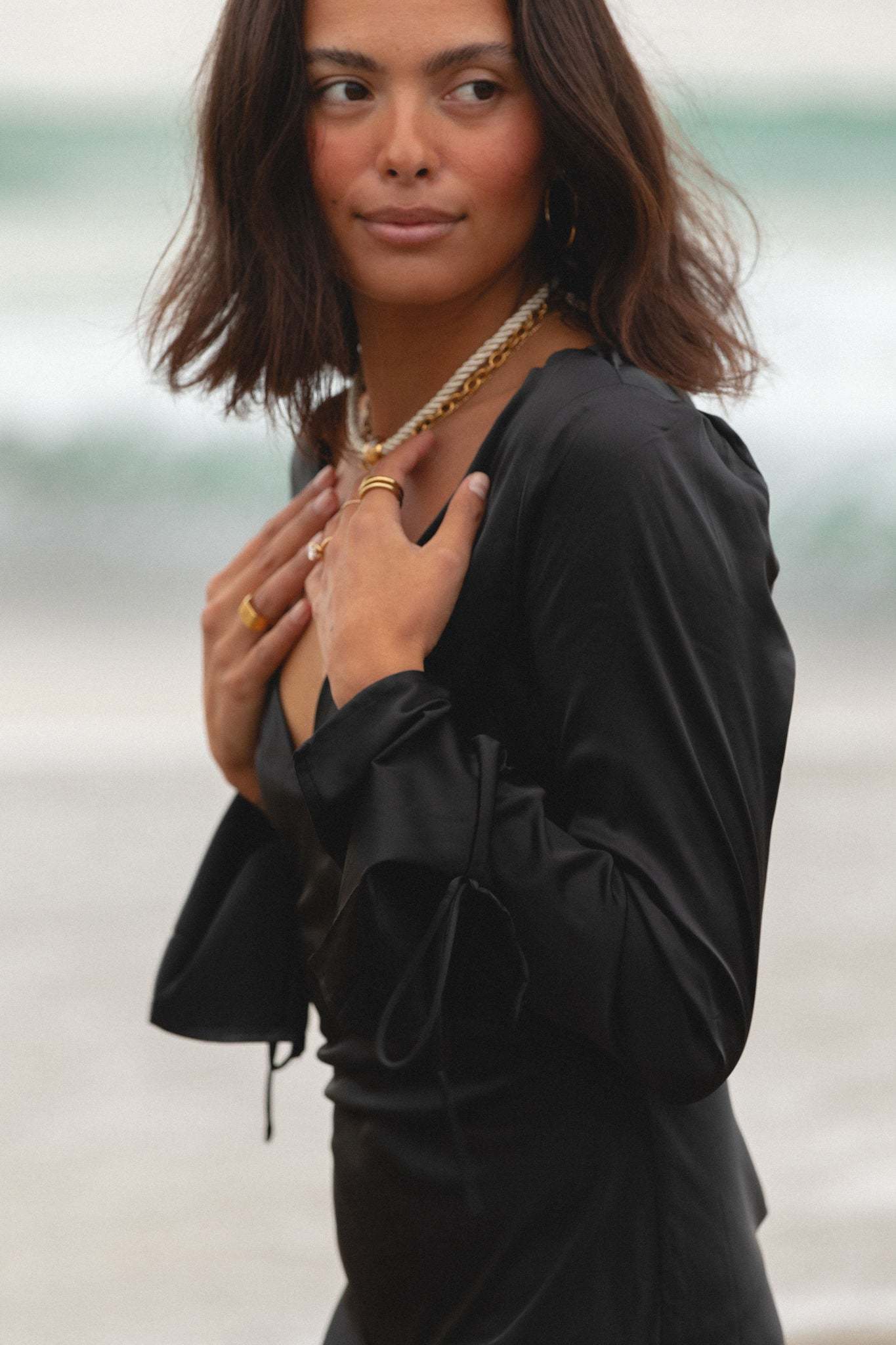 Experience the luxurious feel of our Be Mine Woven Satin Mini Dress. Made from silky smooth fabric, this babydoll dress features a flattering v-neck detail and stylish wide sleeve pop.