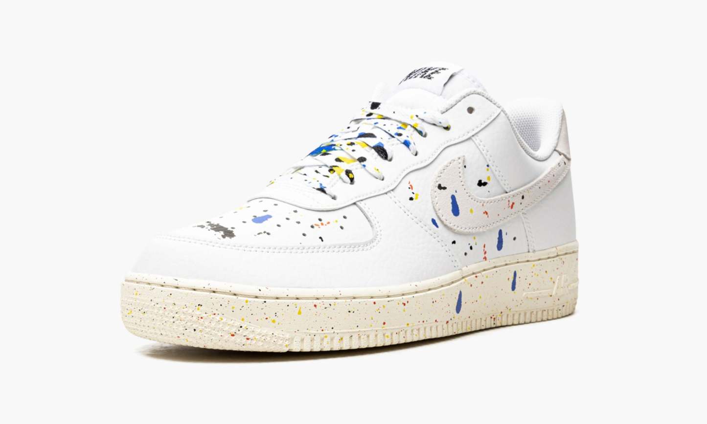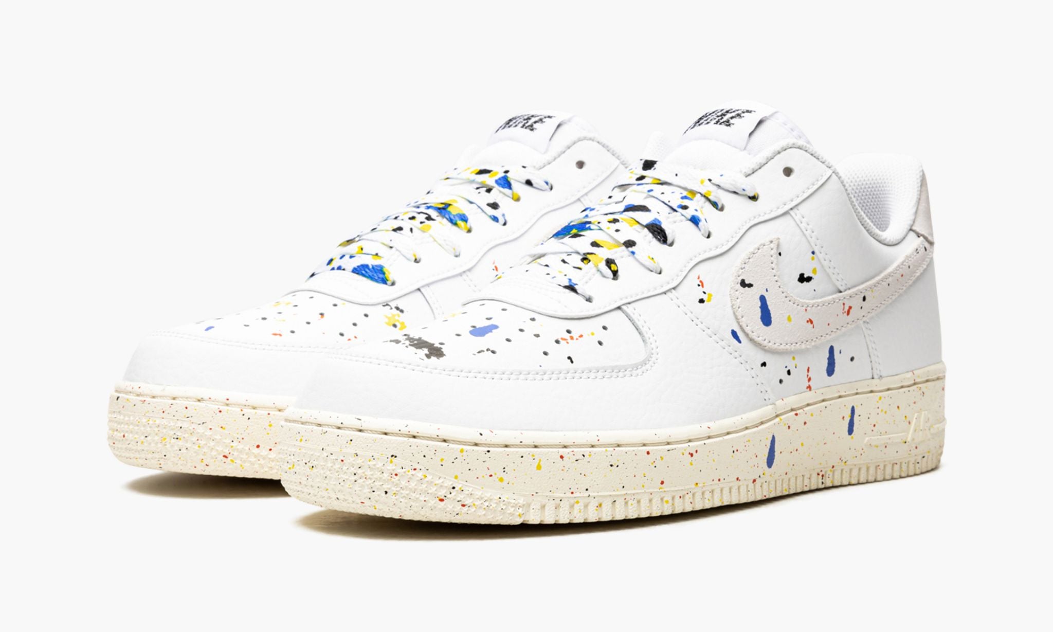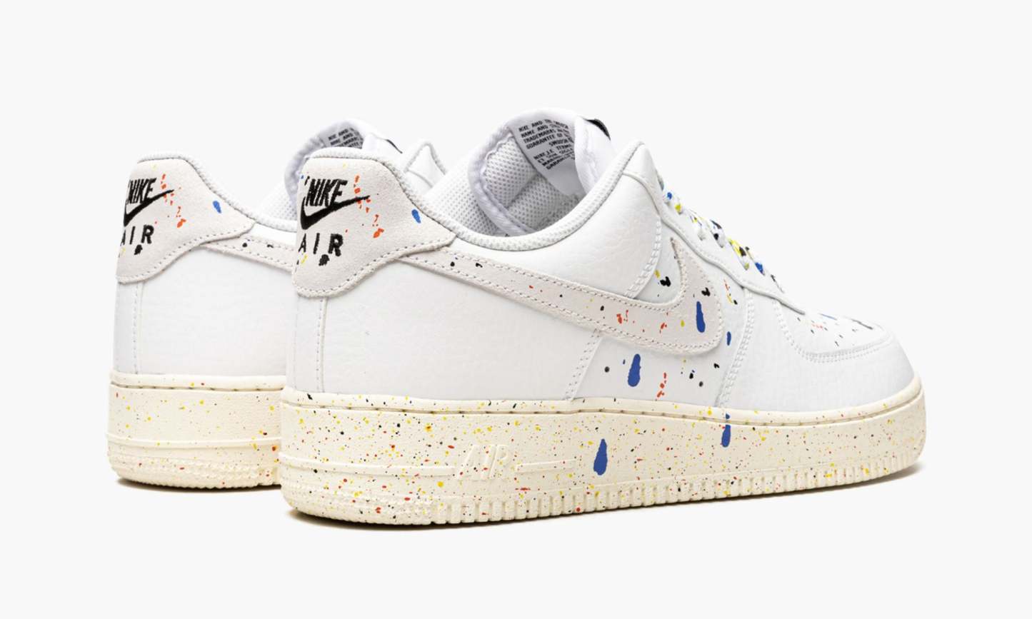 The Low ��Paint Splatter??is one of two colorways of the retro basketball and lifestyle shoe to feature an array of colorful paint splatters on their design. The multicolor, dripping paint splatters found throughout the shoe��s upper mimic the look of a shoe that appears as if it were worn on the feet of an artist during a studio session. Dashes of blue, red, yellow, and black paint drips can be found on the white leather base, including on the perforated toe and mid-panel and on the Sail leather Swoosh on both sides. Additional paint details highlight the look of the laces layered over the white nylon tongue. goes as far as to construct its signature ��??logo in a paint splatter design on the white nylon tongue tag. Additional paint graphics appear on the heel tab around the black ????insignia. The Sail rubber midsole features speckle detailing as a continuation of the model��s ��Paint Splatter??theme.