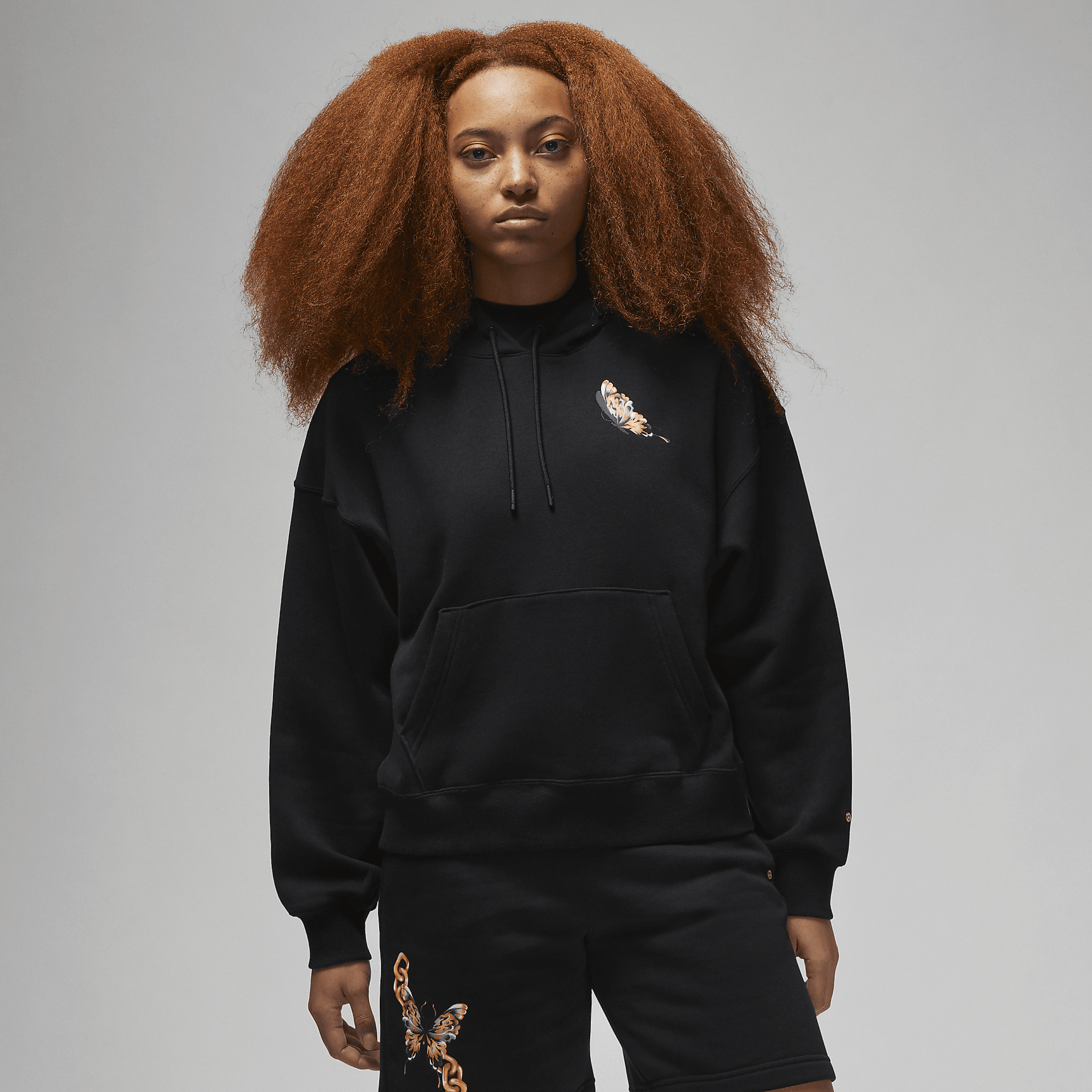 Moss is a Brooklyn-based illustrator and graphic designer. Infused with hallmarks of the street art that inspired her as a kid in New York, her surrealist-leaning art comes in many forms and mediums. For this season's Artist Series, our plush fleece hoodie is graced with butterfly graphics in Moss's signature style.